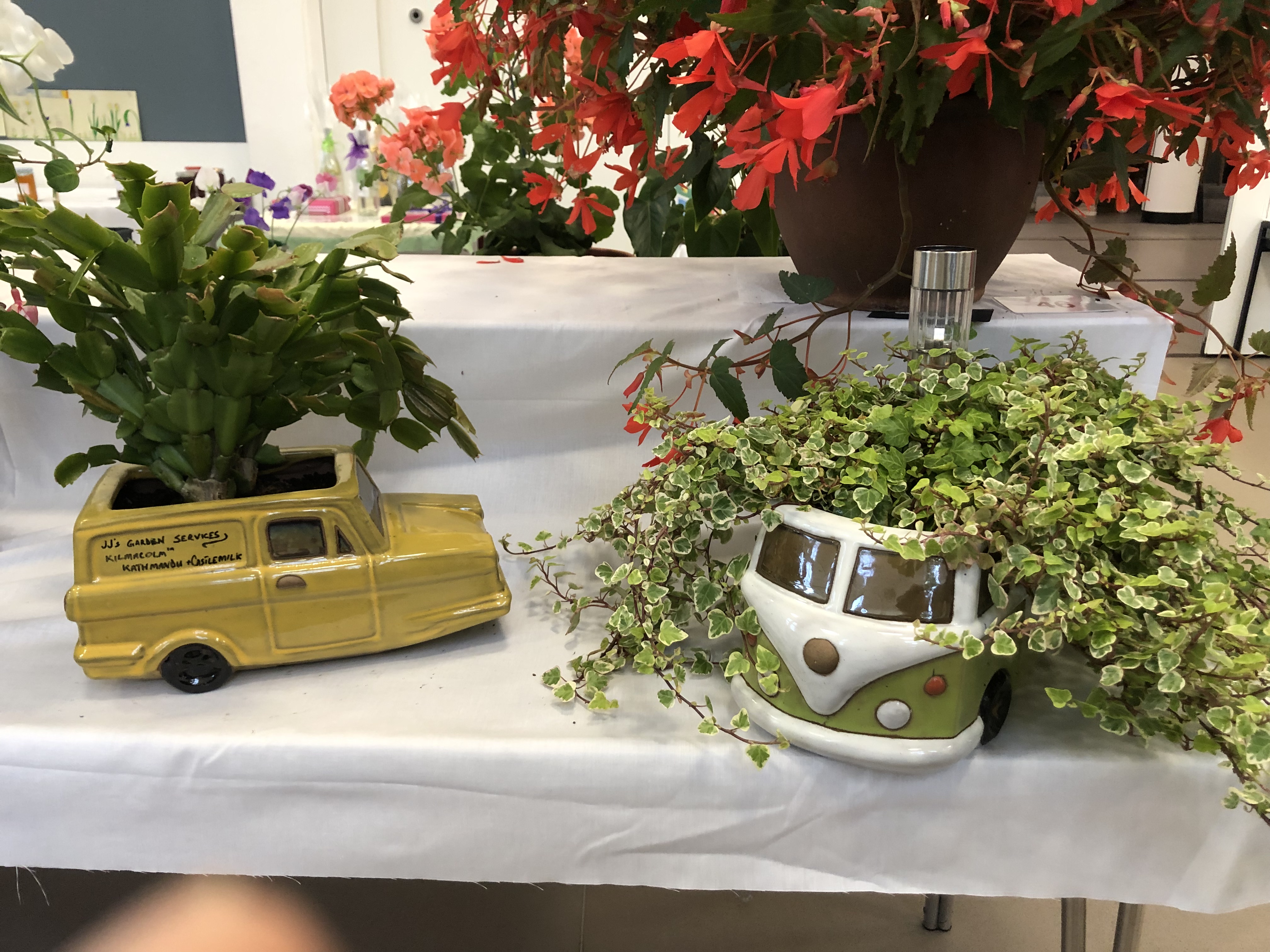 R McIlver – Best exhibit in Carnations. I Morrice – best exhibitin Fuchsias. S MacDougall – best exhibitin Pot Plants, best exhibit in Tomatoes. E Campbell – best exhibit in Hanging Baskets. E Manson – most points in Sect 2 Pot Plants. E Russell – most points n Sect 4 Novices. J O’Rourke – most points in Sect 5 Kitchencraft. H Cook – most points in Sect 6 Floral Art. A McFadzean – most points in Sect 7 Young Gardeners. D Russell – best exhibit in Chrysanthemum, best exhibit in Gladioli, best exhibit in Leeks, most points in Sect3 Vegetables. L McFie – best exhibit in Annuals, best exhibit n Sweet Peas, best exhibit in Herbaceous, best exhibit in Roses, winner of Top Vase, most points in Annuals, most points in Sect1 Cut Flowers. R Mussenden – best exhibit in Dahlias, most points in Dahlias, winn of John Tainsh Cup for the most meritorious exhibit in Flower Show.