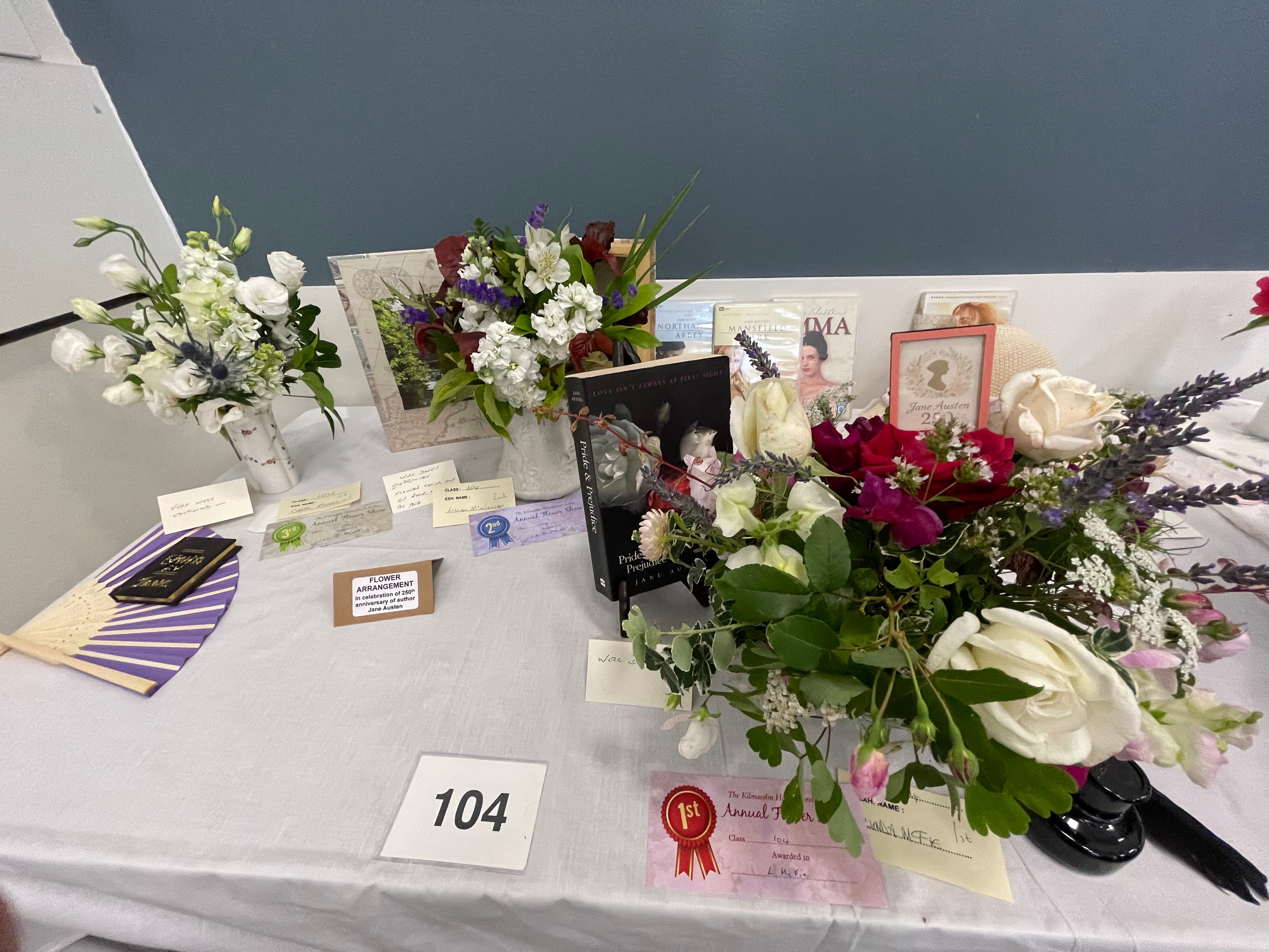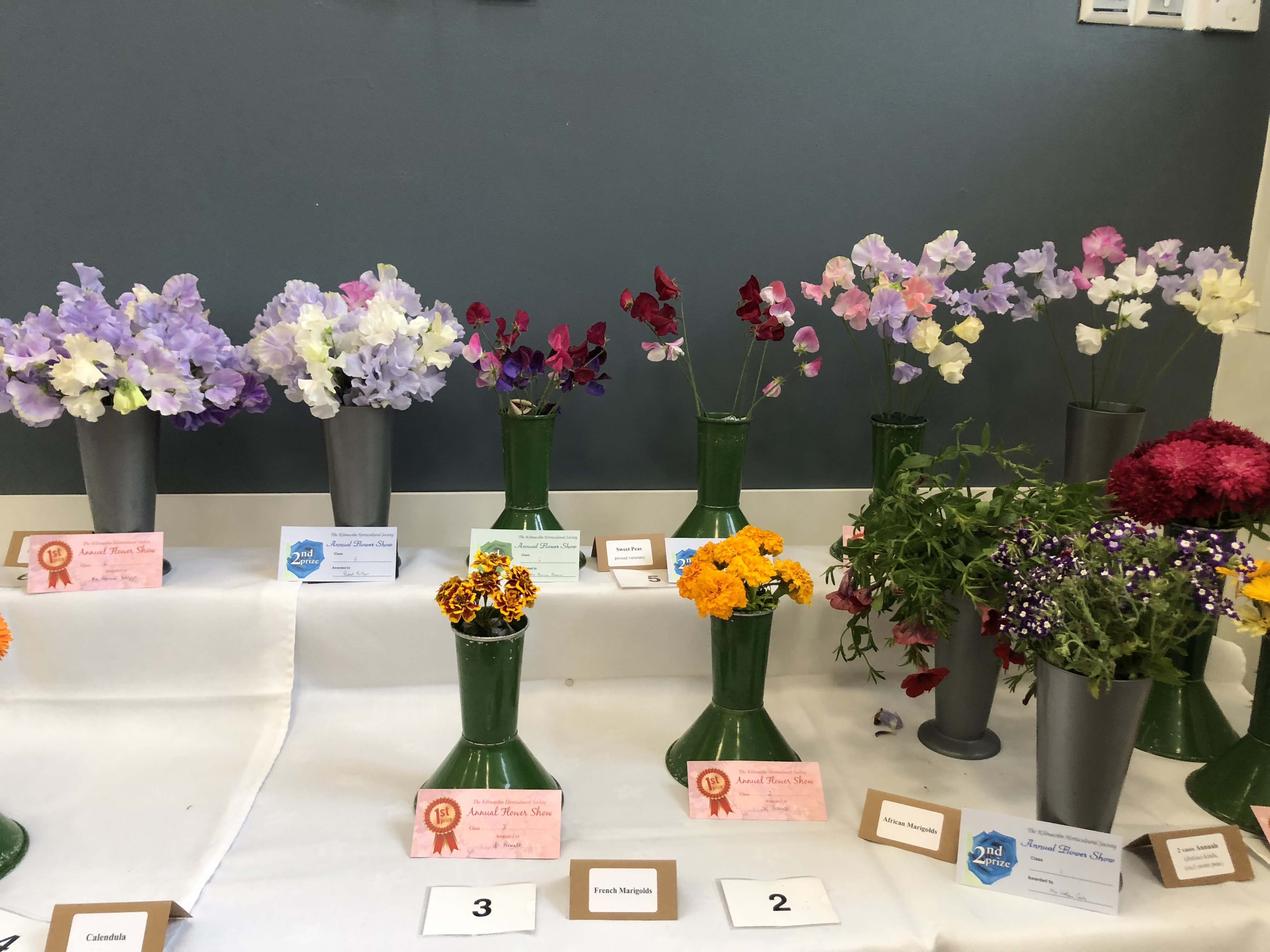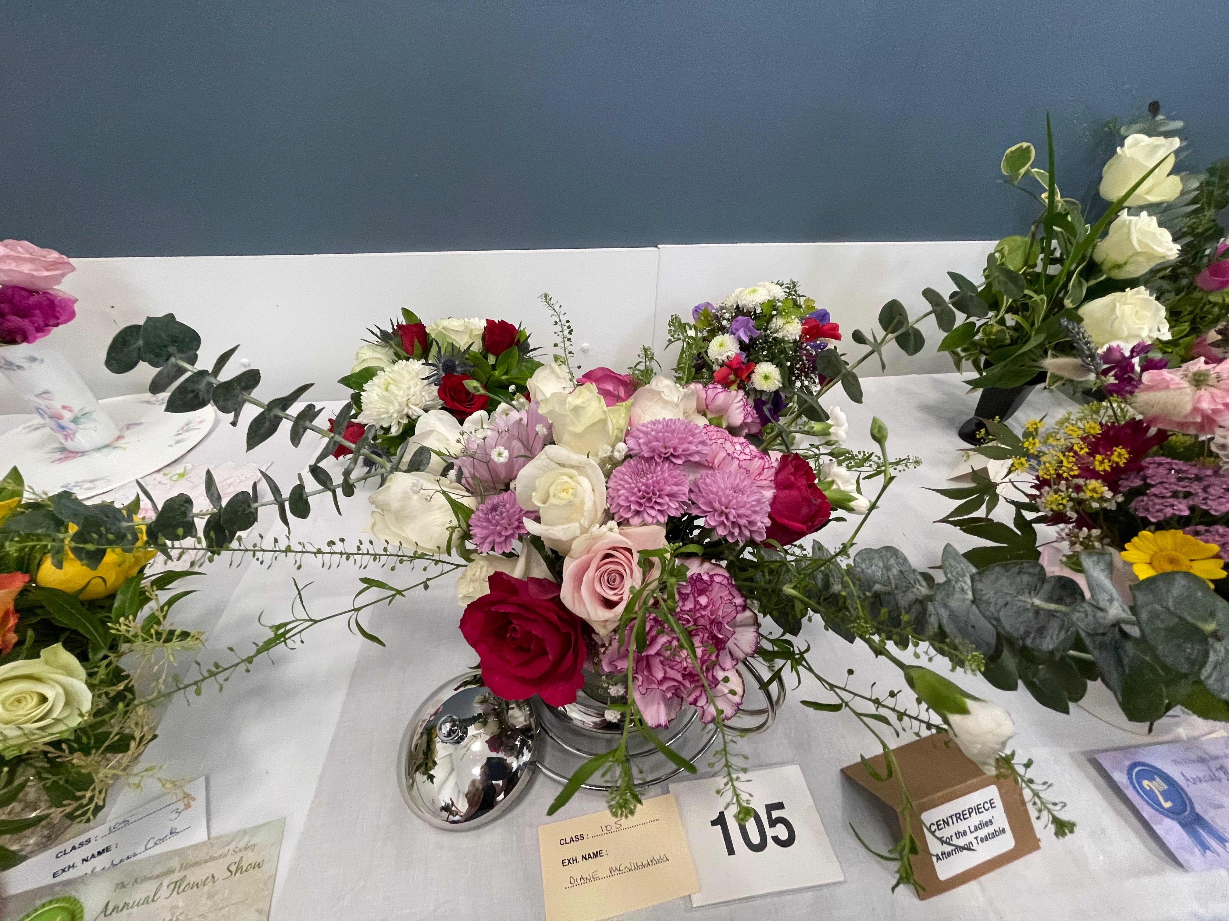 L McFie Best exhibit in Sweet Peas, most points in Annuals, most points in Floral Art