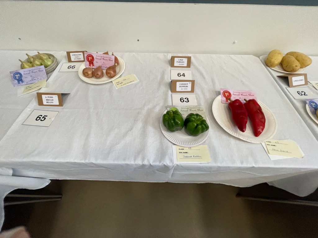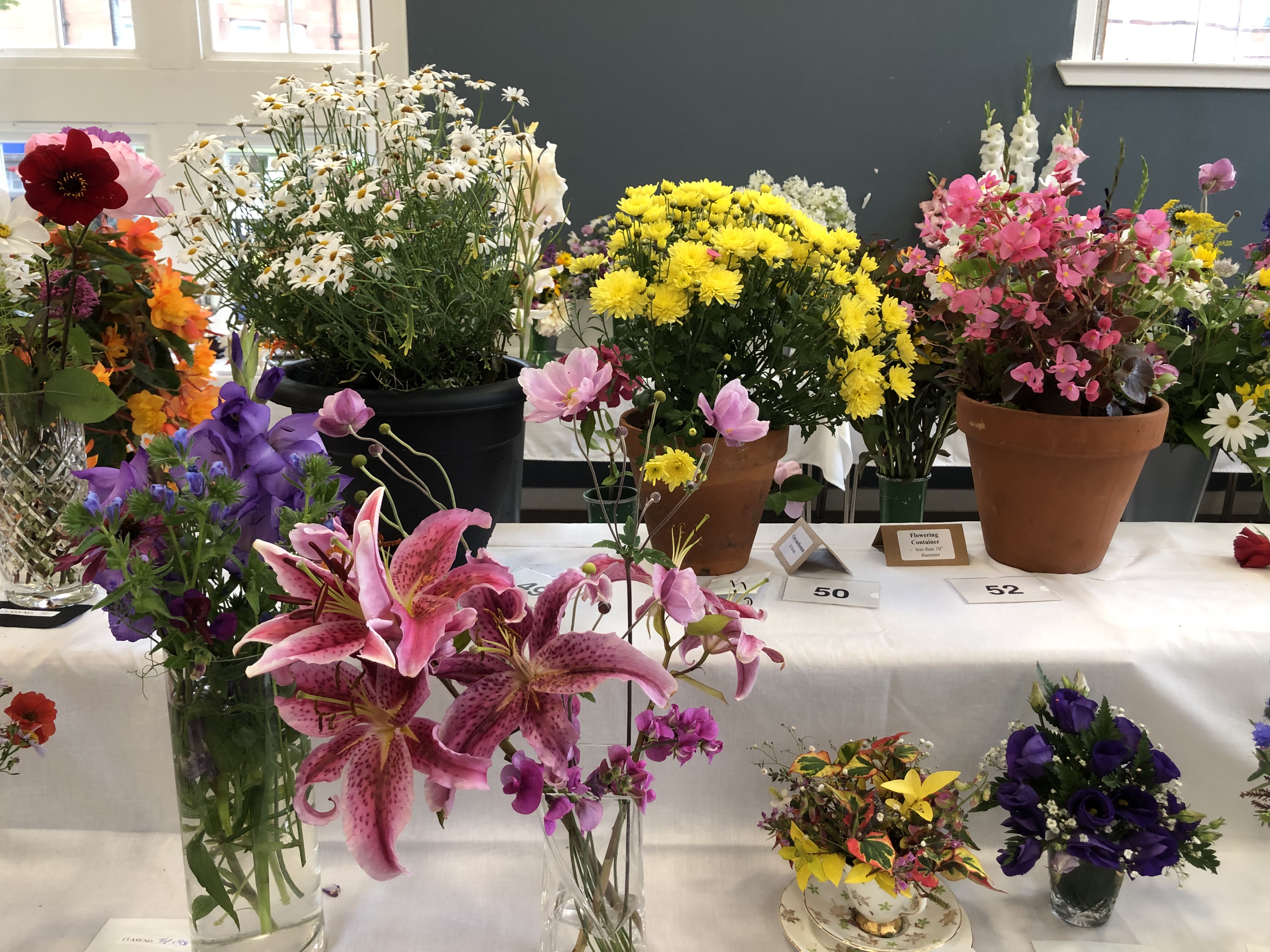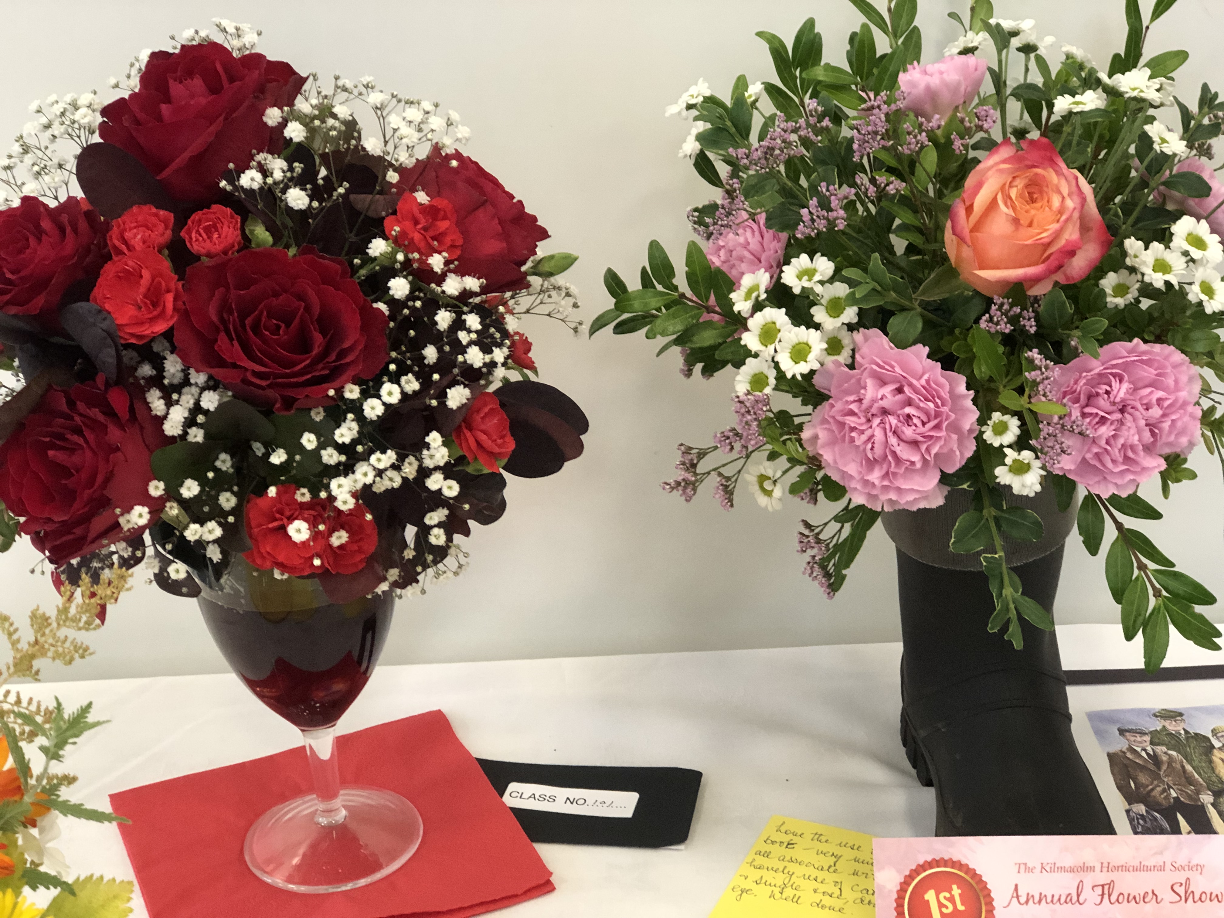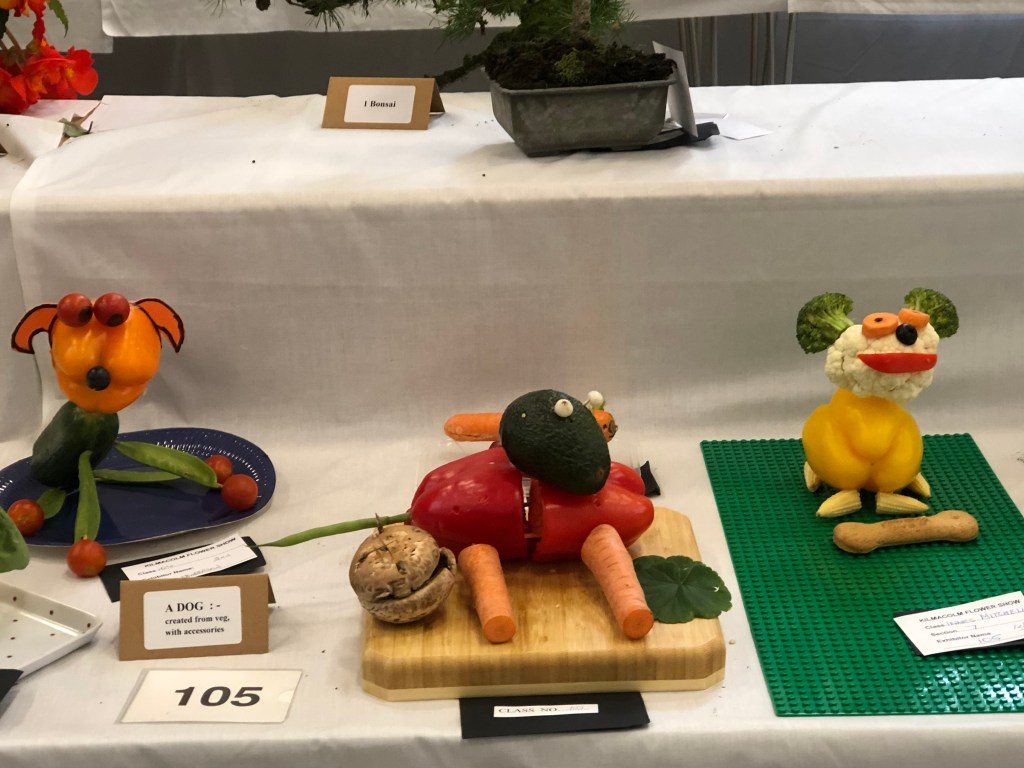 2024 The Annual Flower Show was held on Saturday 31st August, 2024, in the New Community Centre, Kilmacolm. Despite the poor weather conditions throughout the ‘summer’, gardeners nurtures their plants, protected them from cold and wind and slugs. Members made a huge effort to contribute entries, but special thanks go to the Caddlehill Allotments boys who came up trumps with their cut flowers, vegetables, pot plants, giving up their time to exhibit at our Show. The children of Kilmacolm Primary School and St Columba’s Junior School entered classes 109 (Superhero) and 110 (Science poster) which were awarded highly commended by the judges and the public. One of our newest members, Mrs Lynda McFie, ran away with the top awards in several categories after displaying some gold star exhibits in the Cut Flowers section. Congratulations to all, and thank you to all members and visitors to the Show.