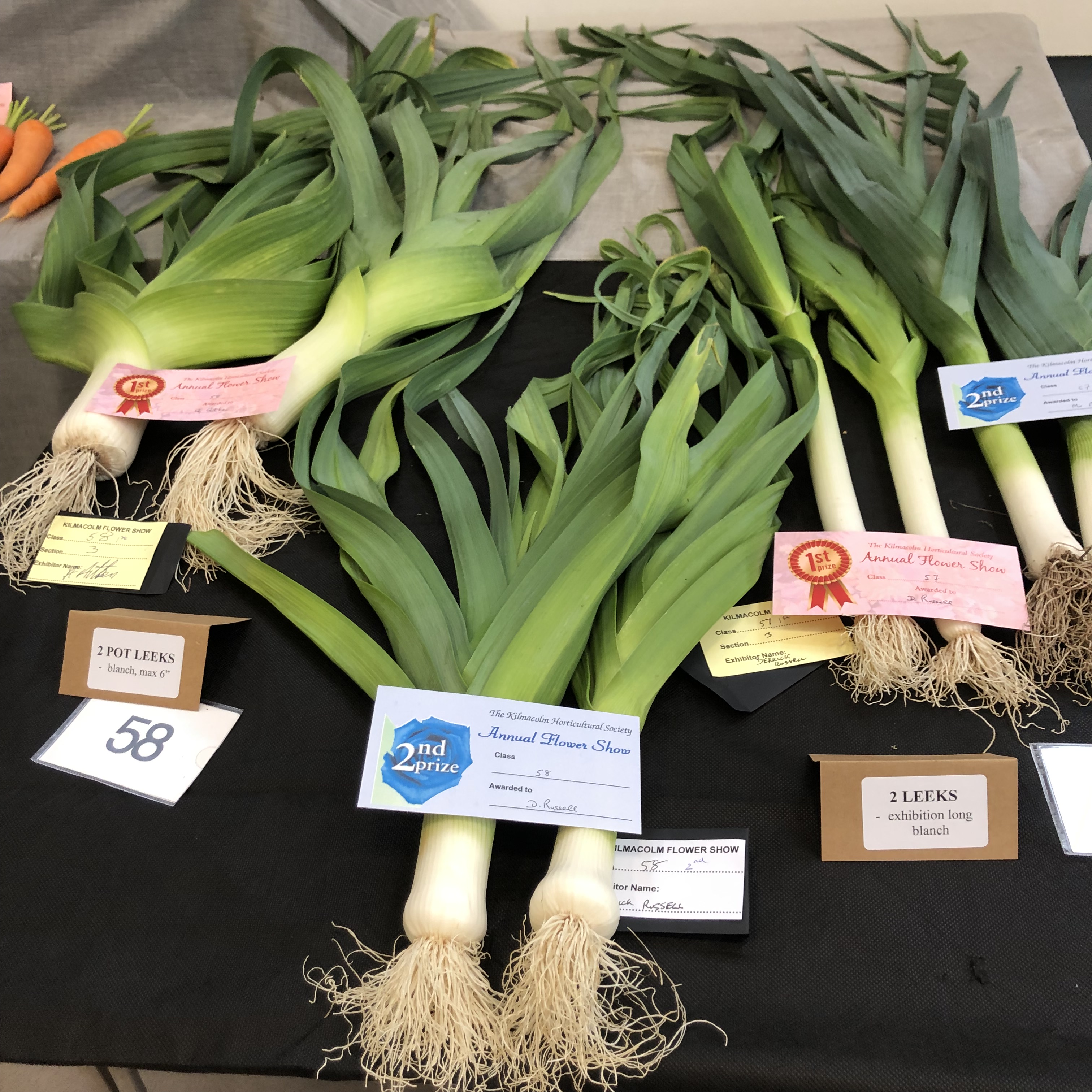 D Russell: Best exhibit in Onions/Leeks, Most point in Vegetables Section