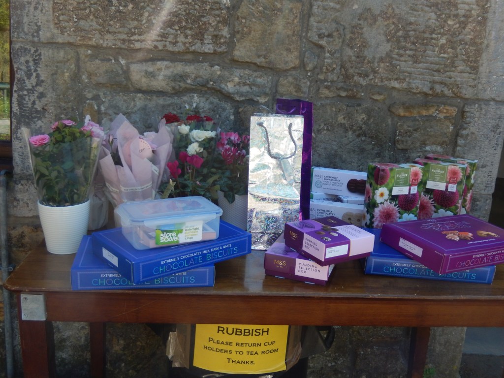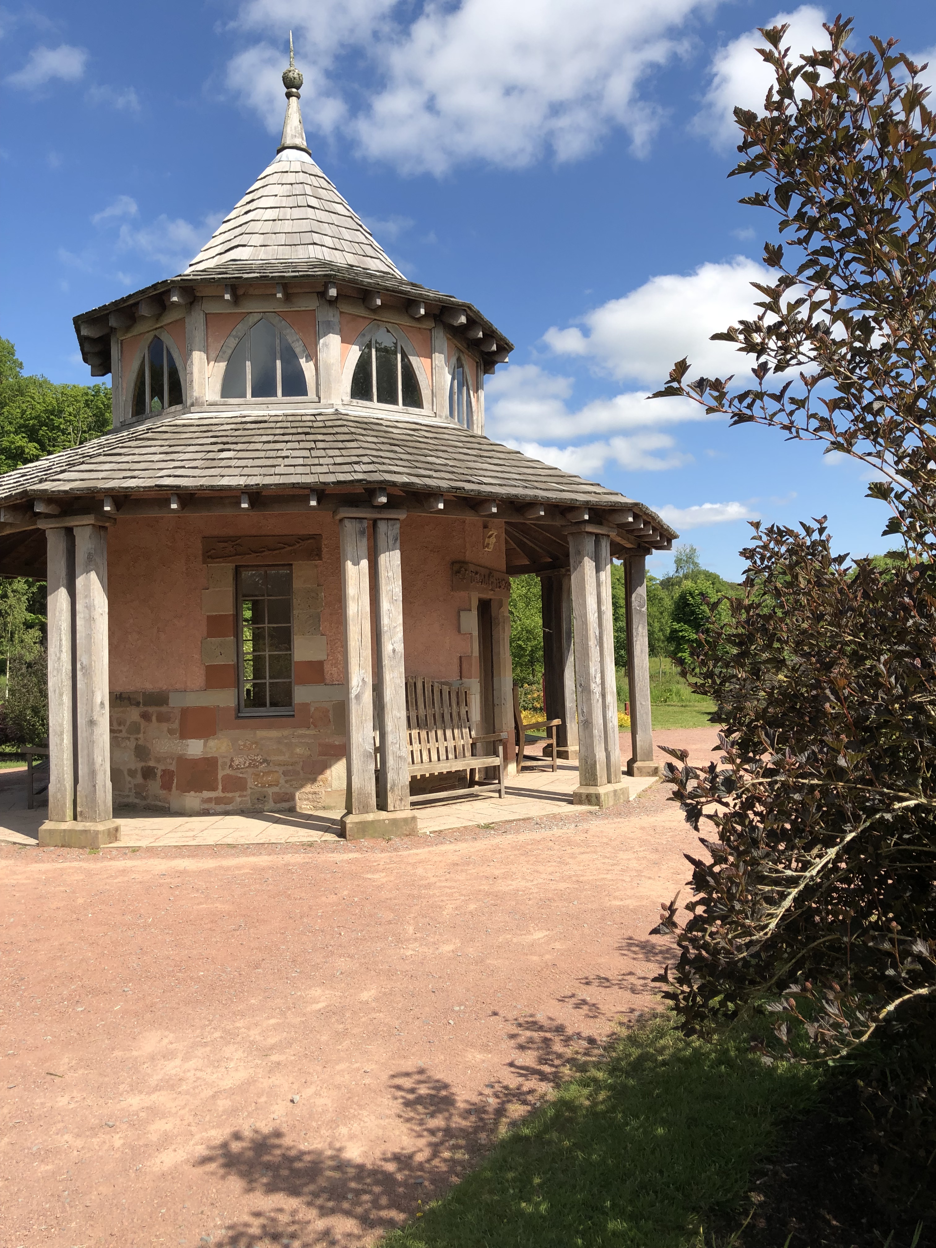 At Scone Palace. Tour of Palace. Soup/sandwiches/coffee in Palace Kitchen. Gardens, gift shop, tea room.